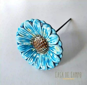 Flor Cerâmica Malmequer – Turquesa/Branco